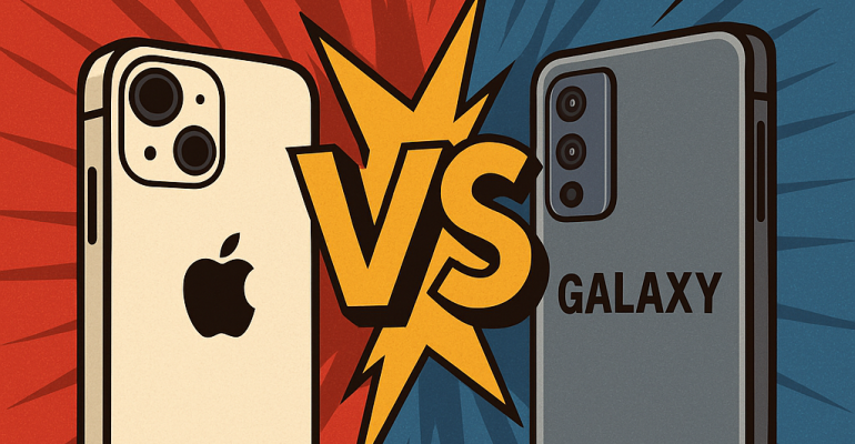 아이폰 vs 갤럭시, 15년 전쟁의 현주소...프리미엄 시장 판도 급변<이미지 - 챗GPT-AI 제작> 스마트폰 시장의 영원한 라이벌, 애플 아이폰과 삼성 갤럭시의 15년 전쟁이 새...
